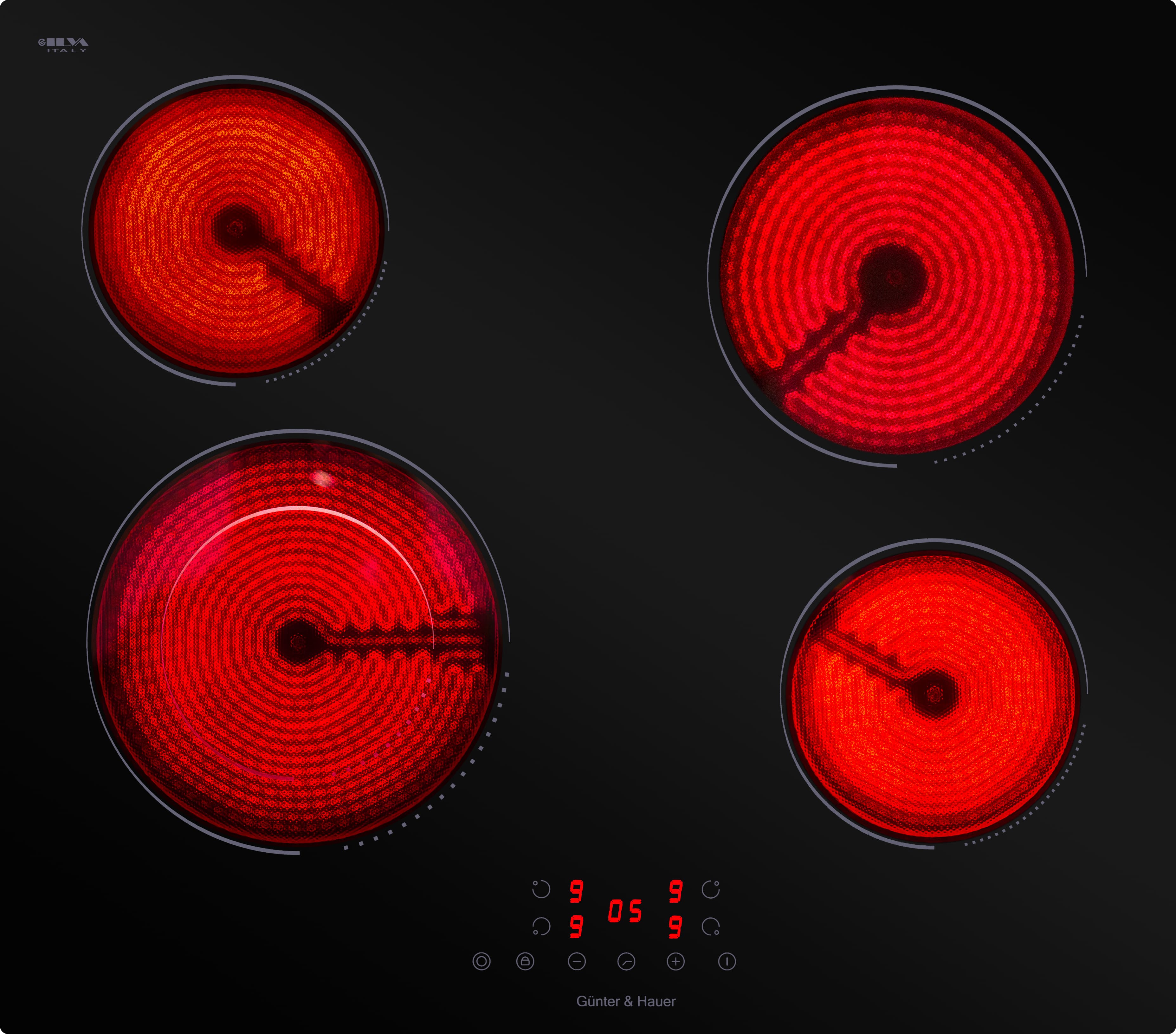 Індикатор залишкового тепла, яким оснащена ця модель, сигналізує про те, що конфорка ще не охолола. Завдяки цій функції ви завжди помітите, що конфорка ще гаряча.