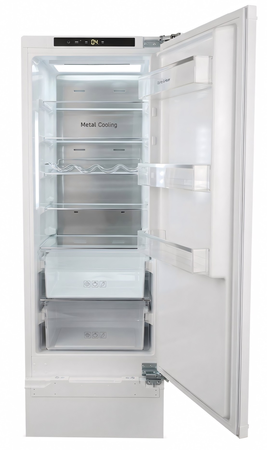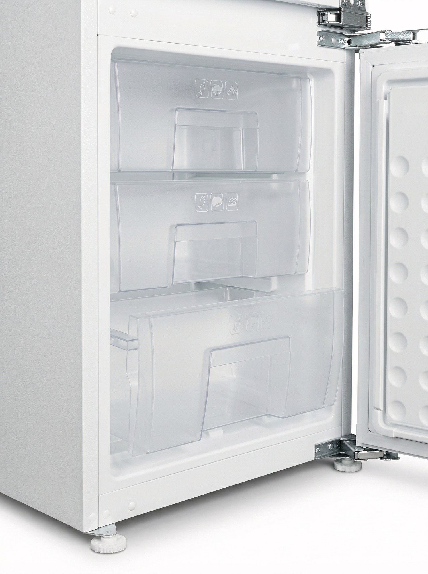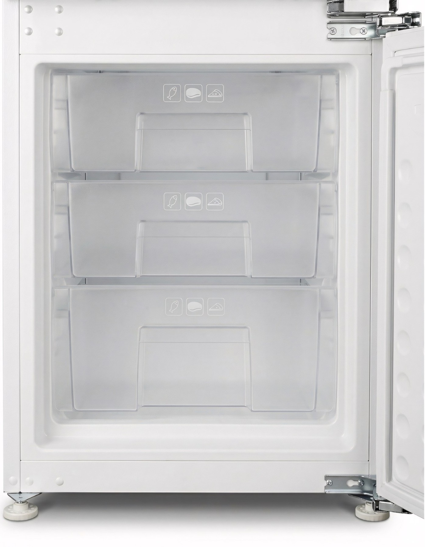Особливість таких холодильників полягає в тому, що вони повністю приховуються за фасадами кухні. Техніка монтується в спеціальний короб, а її лицьова частина закривається декоративною панеллю в стилістиці гарнітура. Залишаючись непомітними оку, вбудовані холодильники ефективно виконують своє пряме призначення.